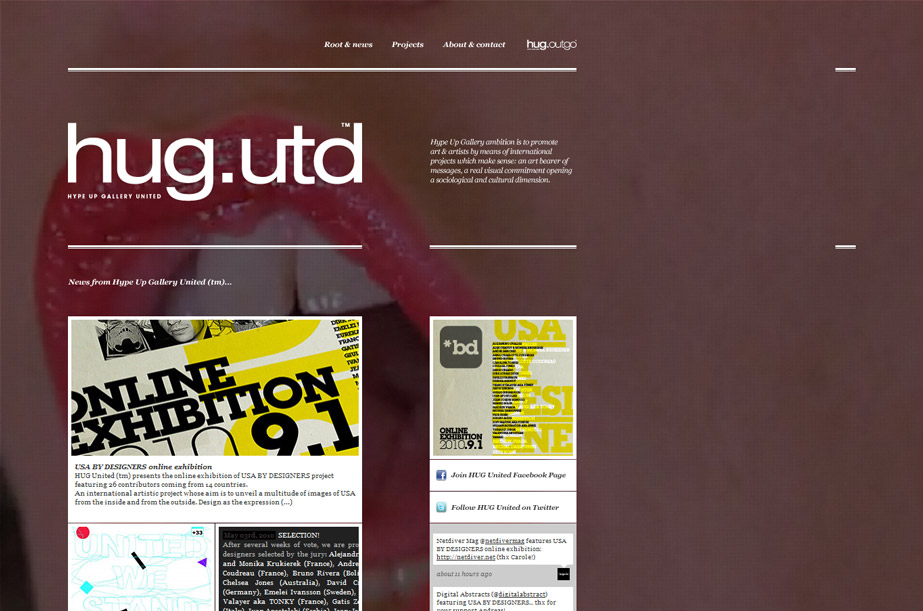 HUG United (tm) wants to thank all the media supporters: NewWebPick, Netdiver, Bigbros Workshop, Territory Magazine, Digital Abstracts, Uailab, Designaside, R mag, Designcollector, Raise Magazine, Spyline, Nineteen74, Schon! Magazine, Computer Graphic Plus Magazine and many more (...)
